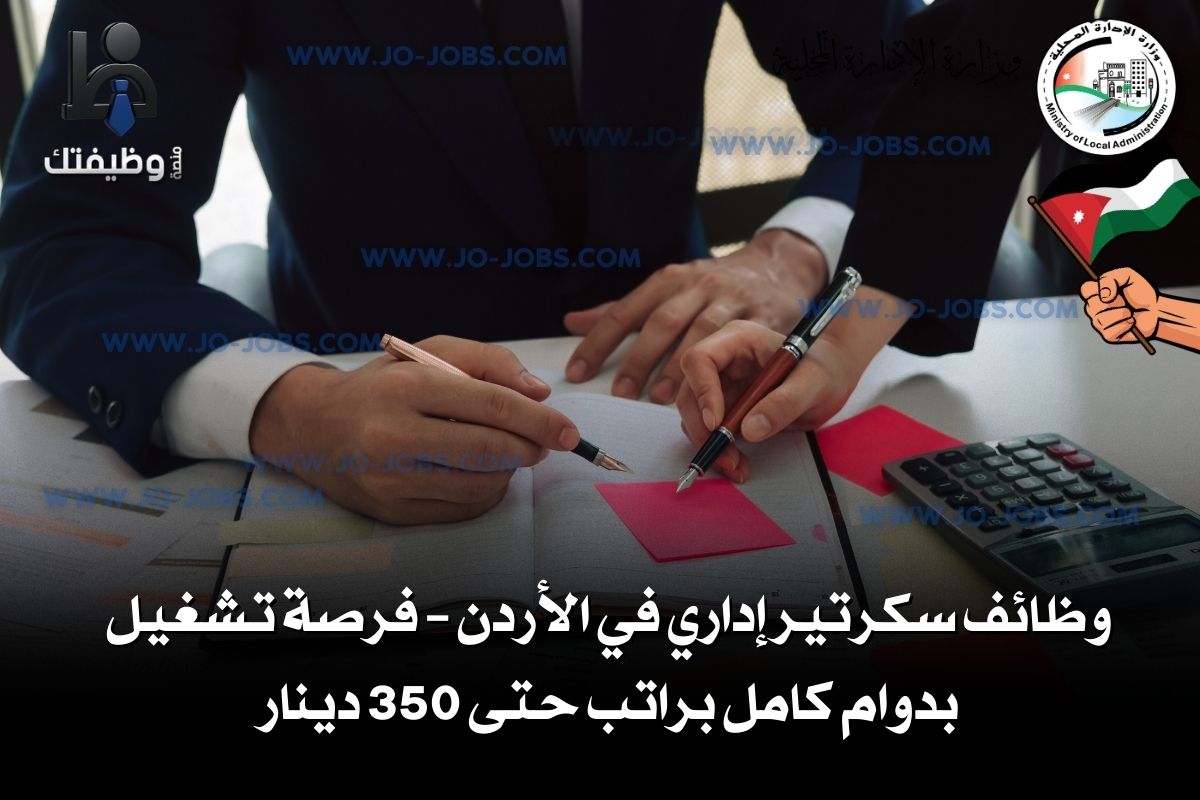 فرصة تشغيل سكرتير إداري في عمّان براتب 300–350 دينار. يشترط البكالوريوس وخبرة سنة والعمر 28–35. التقديم متاح حتى 30/11/2025 عبر الرابط الرسمي.