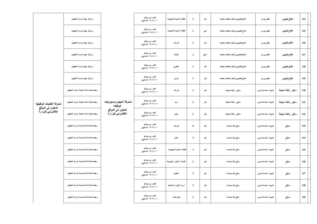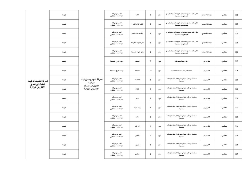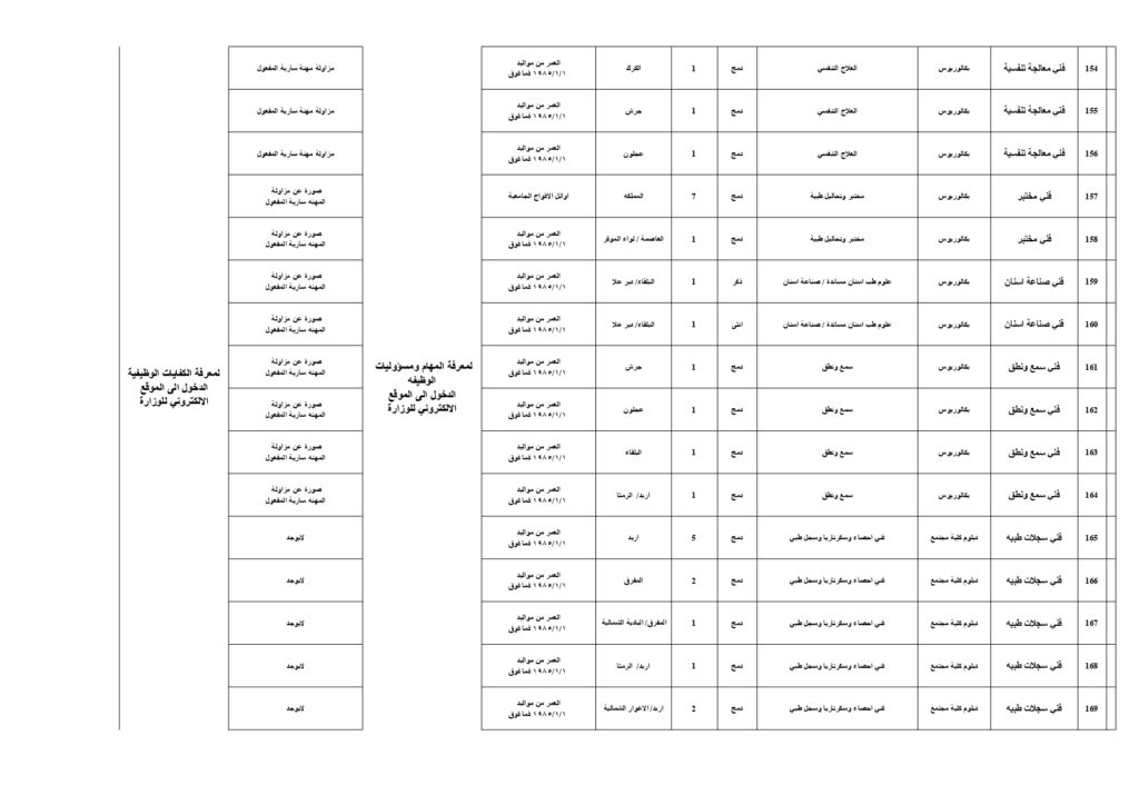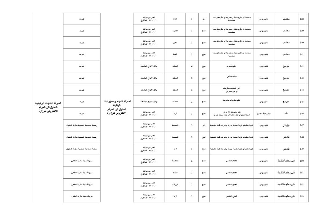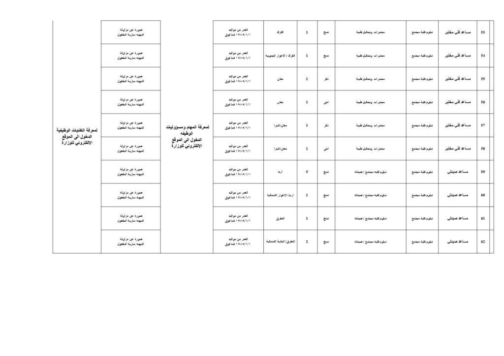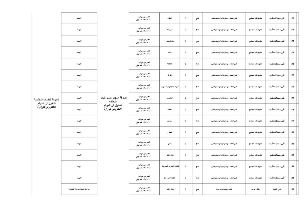 تشمل الوظائف المعلنة (مع اختلاف العدد حسب المنطقة والتخصص):