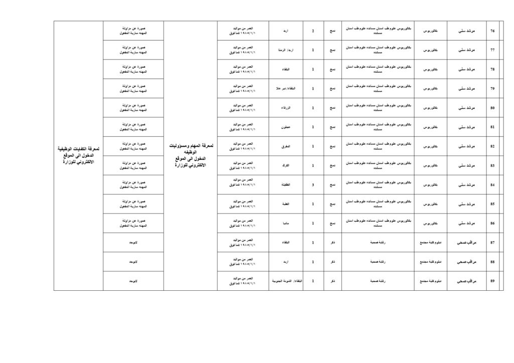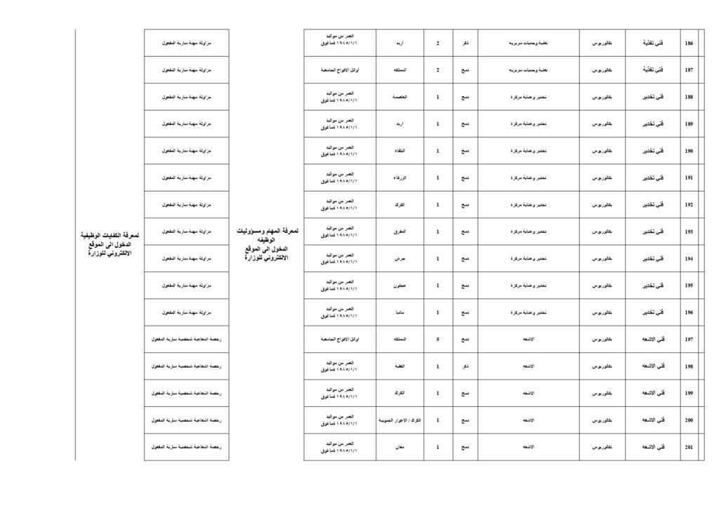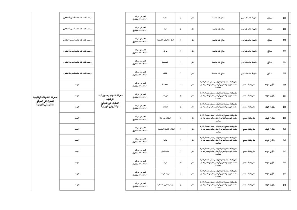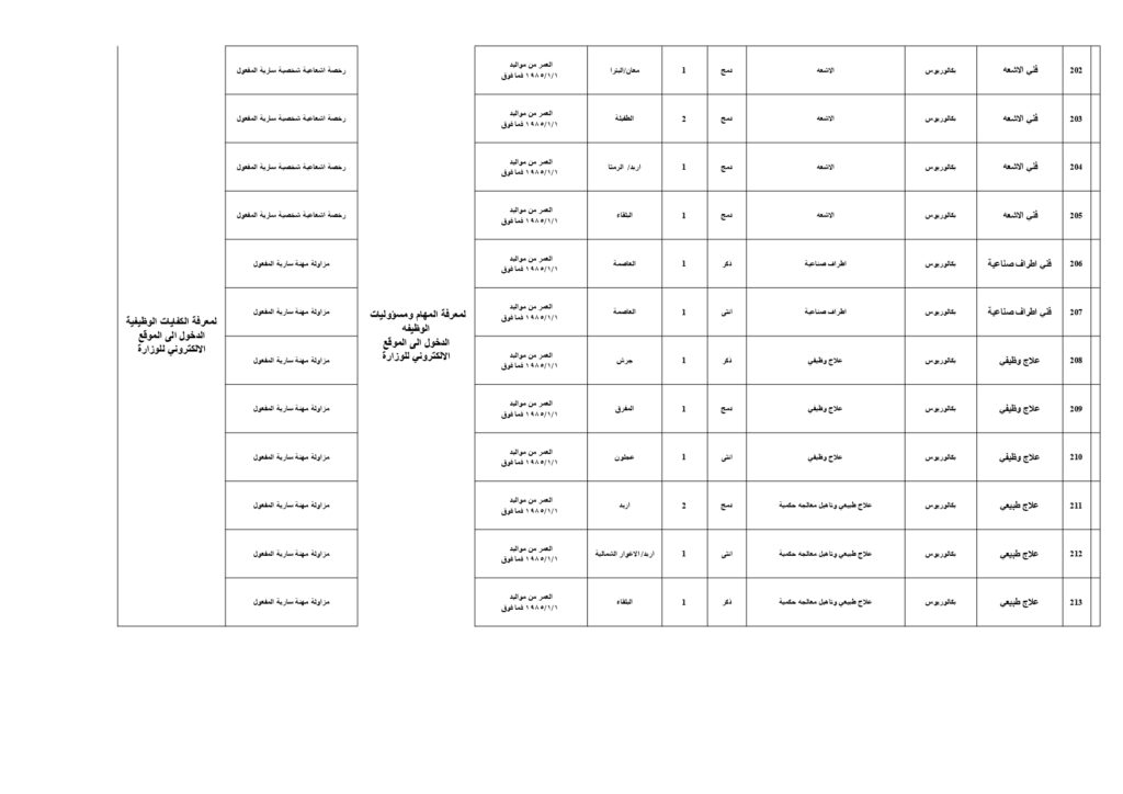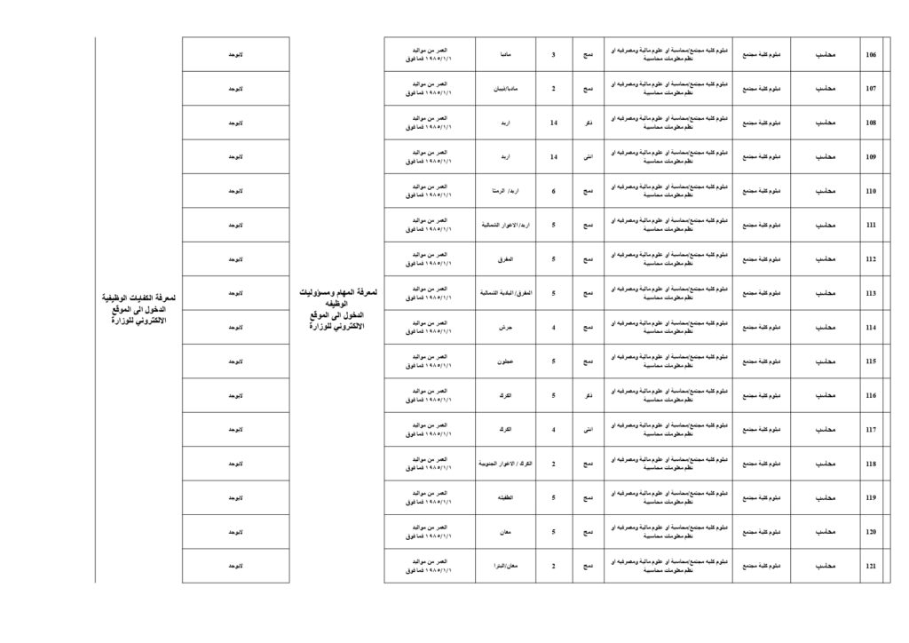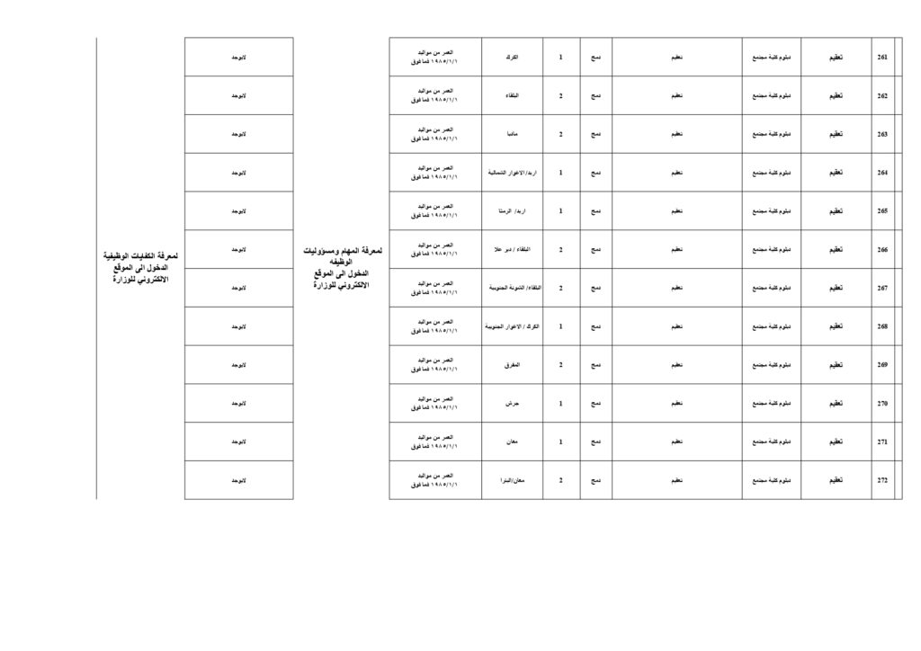 تشمل الوظائف المعلنة (مع اختلاف العدد حسب المنطقة والتخصص):