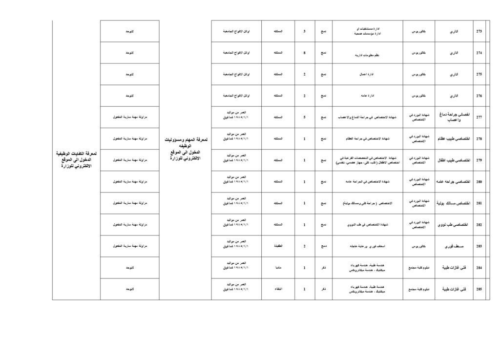 🏥 أبرز الوظائف المطلوبة حسب إعلان وزارة الصحة