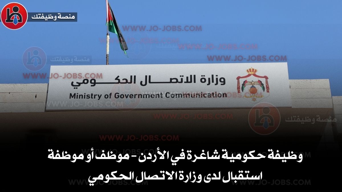 أعلنت وزارة الاتصال الحكومي عن توفر شاغر وظيفي حكومي بمسمى موظف استقبال، وذلك ضمن وظائف الخدمات المساعدة والأعمال الحرفية، وفق الشروط والمعايير المعتمدة في التعيينات الحكومية، وبالتقديم عبر المنصة الرسمية.