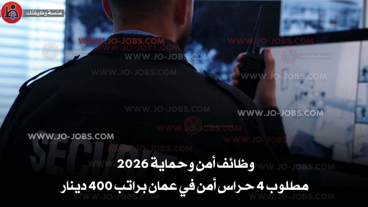 أعلنت المنصة الوطنية للتوظيف (سَجِّل) عن فرصة ذهبية للشباب الأردني تتمثل في برنامج (تدريب مجاني منتهي بالتشغيل) لتعيين 4 حراس أمن للعمل بنظام الدوام الكامل. تُعتبر هذه الفرصة من أهم وظائف اليوم لأنها لا تشترط أي مؤهل علمي معقد أو خبرة سابقة، وتمنحك راتباً شهرياً يصل إلى 400 دينار أردني. انضم إلى أفضل وظائف الأردن 2026 واستغل هذه الفرصة لتأمين مستقبلك المهني. اقرأ التفاصيل وبادر بالتسجيل.