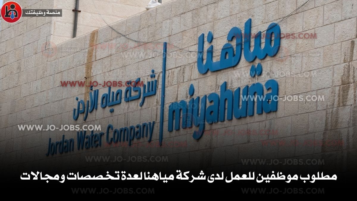 أعلنت شركة مياه الأردن (مياهنا)، الشركة الرائدة في إدارة خدمات المياه والصرف الصحي، عن فتح باب التوظيف لرفد طاقمها الوظيفي بكفاءات نوعية في مجالات (الإنشاءات، الإدارة، المشتريات، والتدقيق المالي). تُعتبر هذه الفرص من أبرز وظائف اليوم لأصحاب الخبرات الطامحين لاستلام مناصب حساسة ومؤثرة. استعد للارتقاء بمسيرتك المهنية ضمن أفضل وظائف الأردن 2026، واقرأ تفاصيل الشواغر أدناه لتجهيز طلبك قبل انتهاء المهلة.